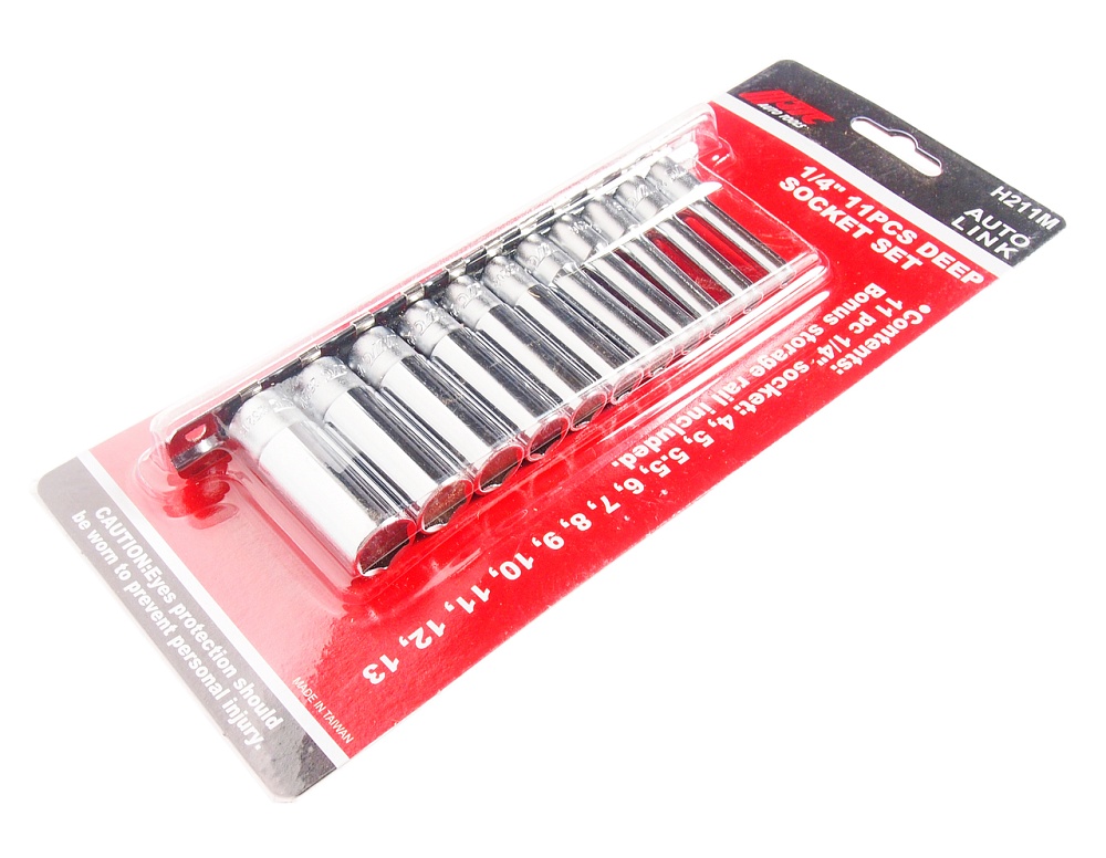 JTC-H211M Набор головок торцевых глубоких 6-гранных 1/4" 4-13мм, длина 50мм 11 предметов JTC /1