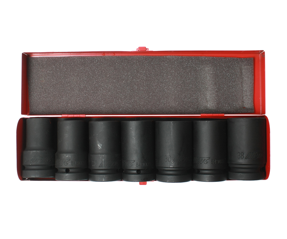 JTC-J807L Набор головок торцевых ударных 6-гранных 1" глубоких 24-38мм (в кейсе) 7 предметов JTC