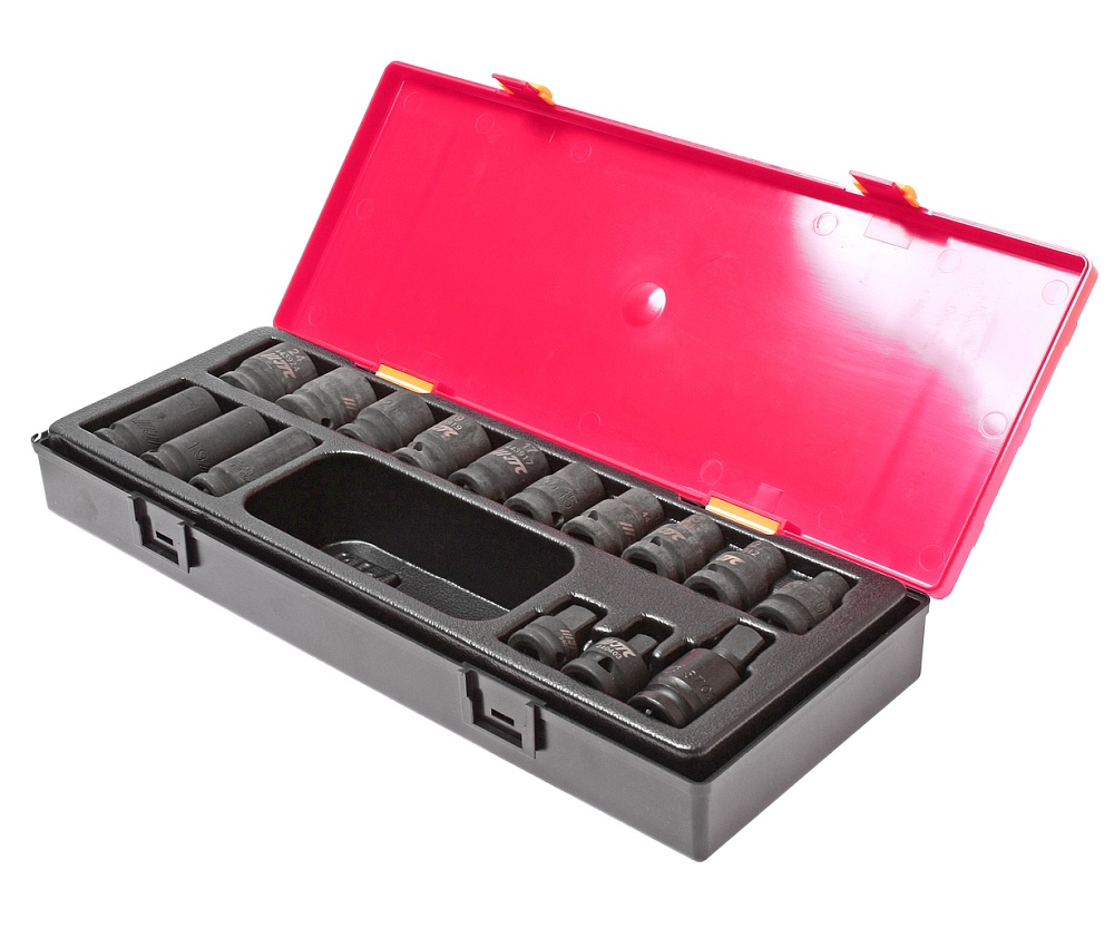 JTC-K4162 Набор головок торцевых 1/2" 12-ти гранных 10-24мм ударных (в кейсе) 16 предметов