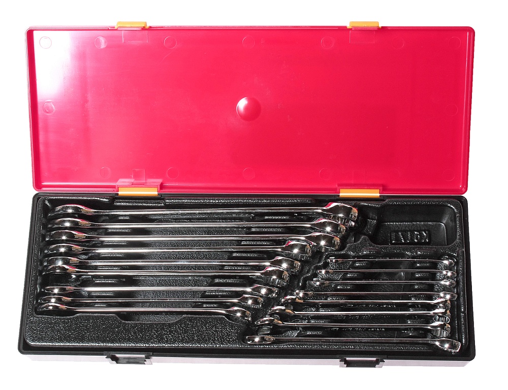 Артикулы JTC-АЕ1206-АЕ1223: ключ рожково-накидной (зеркальная полировка) 6 мм., 7 мм., 8 мм., 9 мм., 10 мм., 11 мм., 12 мм., 13 мм., 14 мм., 15 мм., 16 мм., 17 мм., 18 мм., 19 мм., 21 мм., 22 мм., 23 мм. - 17 шт.