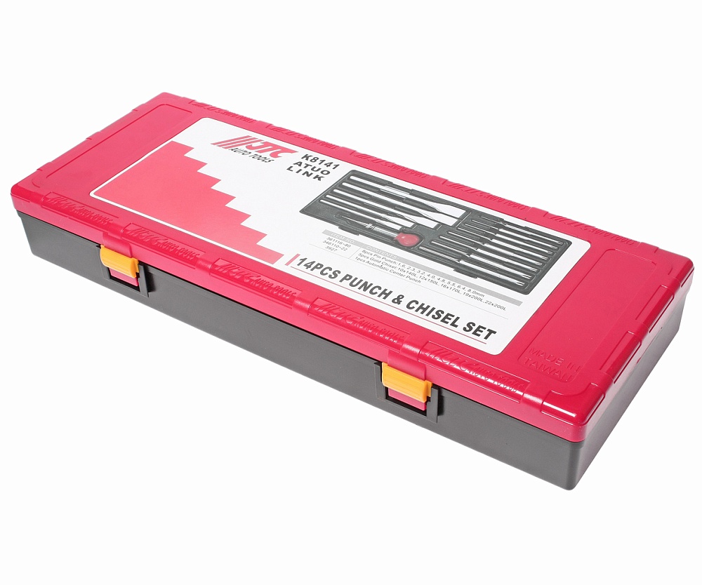 JTC-K8141 Набор выколоток и зубил с кернером в комплекте (в кейсе) 14 предметов