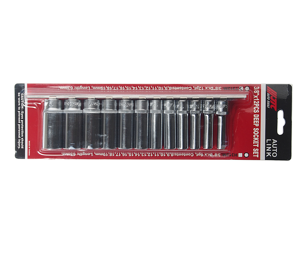 Набор головок торцевых глубоких 12-гранных 3/8" 8-19мм на планке JTC JTC-T312M