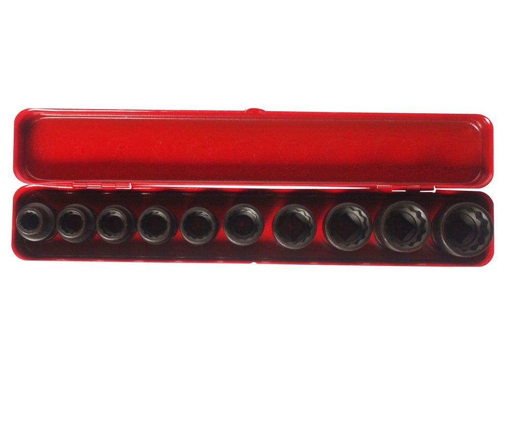• 10 шт. -10, 12, 13, 14, 15, 17, 19, 21, 22, 24 мм. Под ключ 1/2Dr., 12 граней.