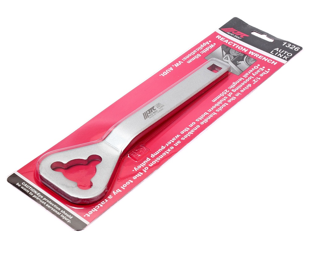 В конструкции ключа предусмотрена возможность его применения с воротком или трещоткой на 1/2” применяется для надежной фиксации шкива водяного насоса от проворачивания.
