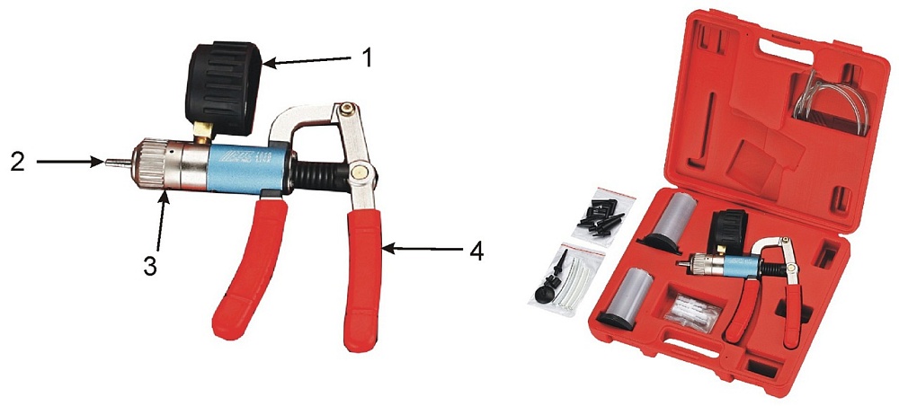 кейсе) предназначен для выявления проблем с давлением и герметичностью. Тестер позволяет создавать разрежение и давление при проведении проверок различных вакуумных или пневматических актюаторов и датчиков. Универсальный вакуумный тестер является многофункциональным прибором и