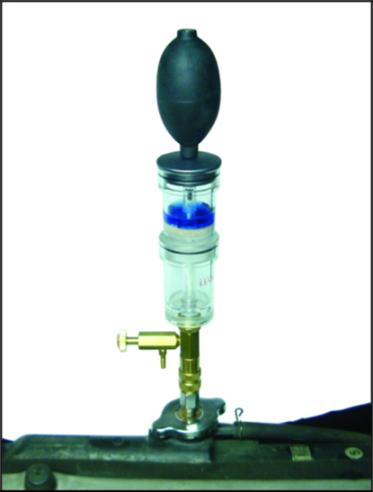 Отработавшие газы при проникании в систему охлаждения двигателя накапливаются в «воздушной подушке» радиатора или расширительного бачка. Тестер анализирует состав этого воздуха, и тестовая жидкость меняет цвет с голубого на желтый при наличии CO2 в воздухе для бензиновых двигателей и на зеленый при наличии CO2 в воздухе для дизельных двигателей. Обычный метод часто дает неправильный результат, так как присутствующие в воздухе частицы щелочи могут нейтрализовать эффект присутствия СО2, показывая, что утечки нет, когда она присутствует. Эти частицы абсорбируются первой камерой тестера, которая действует как фильтр, позволяя только воздуху и СО2 достигать второй — верхней камеры. Если жидкость в верхней камере меняет цвет на желтый или зеленый, это факт, свидетельствующий о наличии СО2 в антифризе.