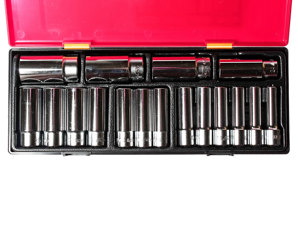 Набор головок торцевых 1/2" 6-ти гранных 10-32мм глубоких 17 предметов JTC