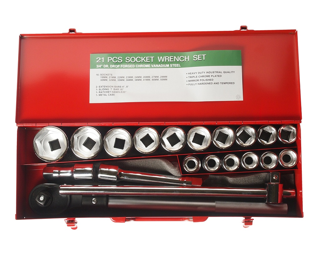 Набор головок торцевых 3/4" 6-ти гранных 19-50мм 21 предмет JTC