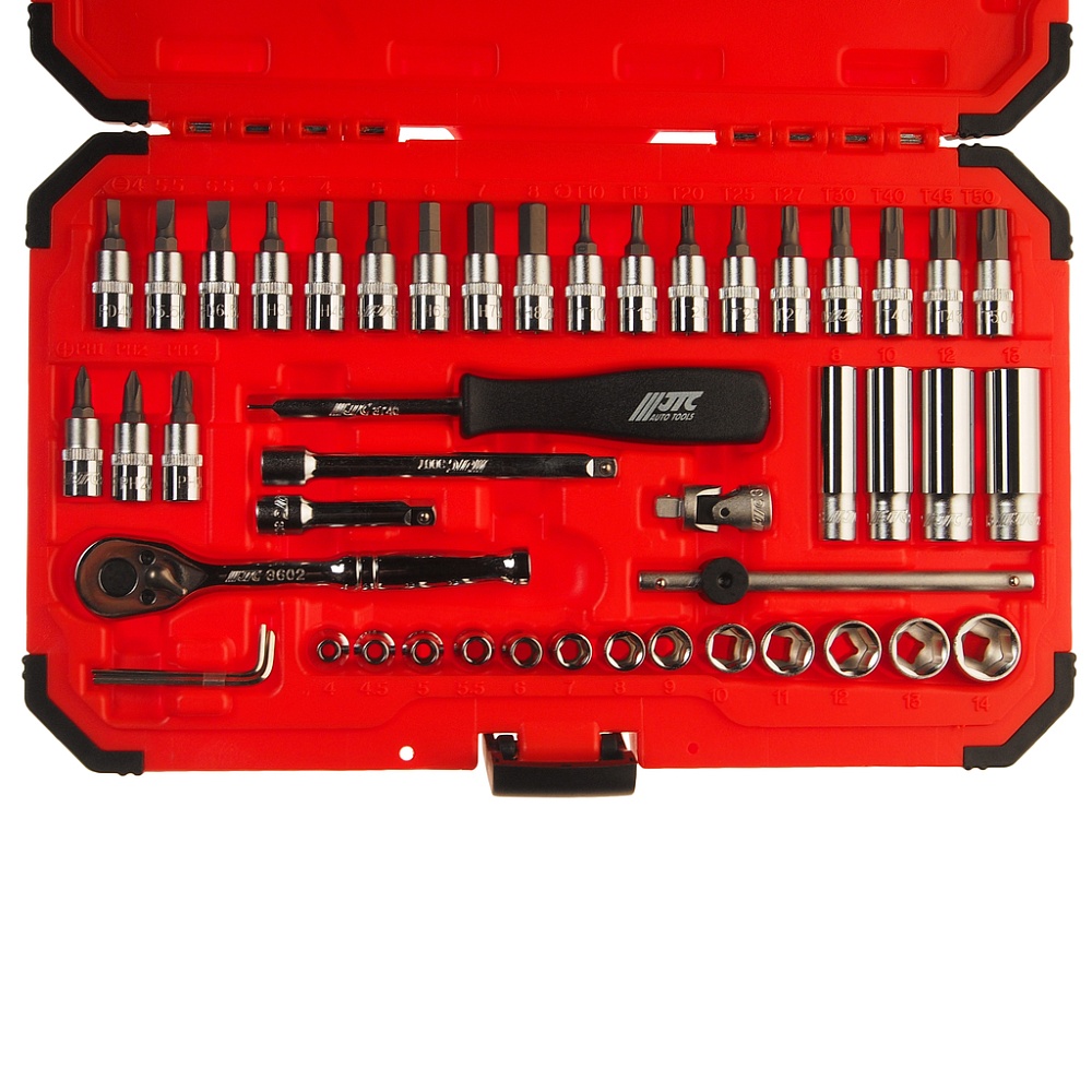 Набор головок торцевых и насадок 1/4" 6-ти гранных 4-14мм, Т10-Т50 (в кейсе) 47 предметов JTC купить в Нижнем Новгороде цена ✅ - Все для СТО