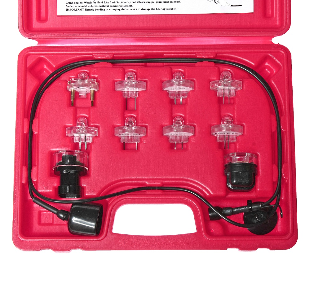 В набор входит 7 адаптеров для проверки GM PFI, Форд (Ford) TBI, GEO TBI, BOSCH PFI, GM TBI, GM SCPI, GM MULTEC2, BOSCH 2. 2 адаптера IAC для GM 1982 г.в. и позже, GM TBI и PFI, GM 1981 г.в. или позже GM 700 TBI и PFI, а также 1 оптоволоконный удлинитель.