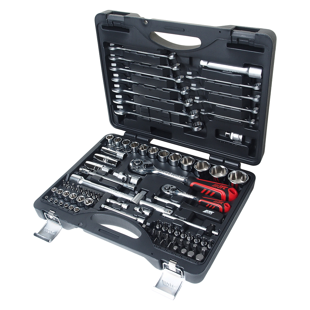 Набор 6-гранных инструментов 1/4" & 1/2" в кейсе, 85шт JTC JTC-H085C-B72 включает в себя все необходимые инструменты и приспособления для ремонта и обслуживания промышленного оборудования, автомобильного транспорта, мототехники и мн. др. Все компоненты изготовлены из качественных материалов, имеют повышенный рабочий ресурс. Для удобства хранения и переноски изделий без риска утери мелких компонентов предусмотрен прочный, закрывающийся кейс.
