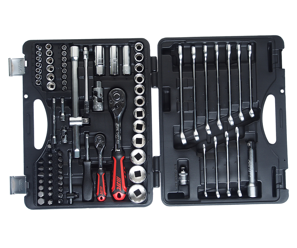 Набор 6-гранных инструментов 1/4" & 1/2" в кейсе, 85шт JTC JTC-H085C-B72 включает в себя все необходимые инструменты и приспособления для ремонта и обслуживания промышленного оборудования, автомобильного транспорта, мототехники и мн. др. Все компоненты изготовлены из качественных материалов, имеют повышенный рабочий ресурс. Для удобства хранения и переноски изделий без риска утери мелких компонентов предусмотрен прочный, закрывающийся кейс.