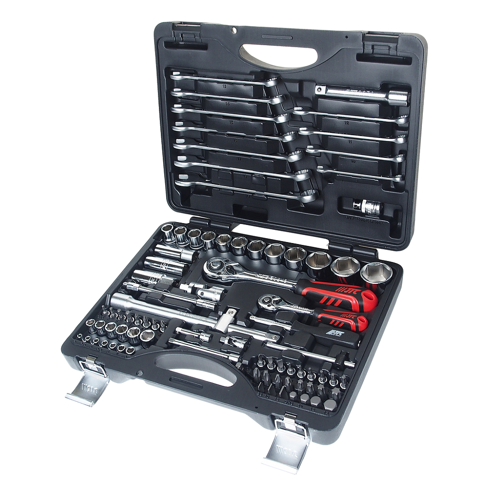 Набор 6-гранных инструментов 1/4" & 1/2" в кейсе, 85шт JTC JTC-H085C-B72 включает в себя все необходимые инструменты и приспособления для ремонта и обслуживания промышленного оборудования, автомобильного транспорта, мототехники и мн. др. Все компоненты изготовлены из качественных материалов, имеют повышенный рабочий ресурс. Для удобства хранения и переноски изделий без риска утери мелких компонентов предусмотрен прочный, закрывающийся кейс.