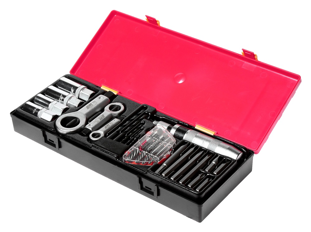 Набор инструментов для демонтажа крепежных элементов с поврежденной резьбой 26 предметов в кейсе JTC