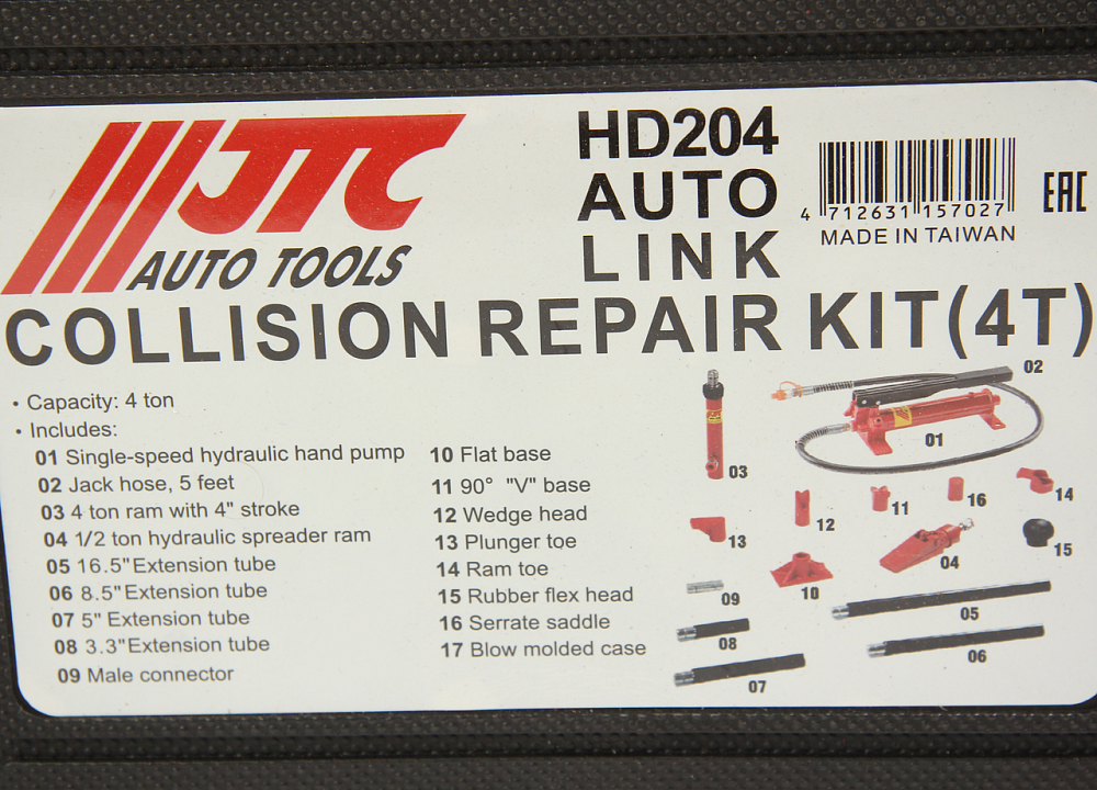 Набор инструментов для кузовных работ гидравлический, усилие 4т, 17 предметов в кейсе JTC купить в Нижнем Новгороде цена ✅ - Все для СТО