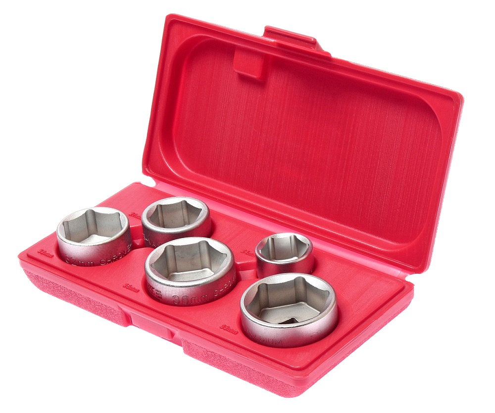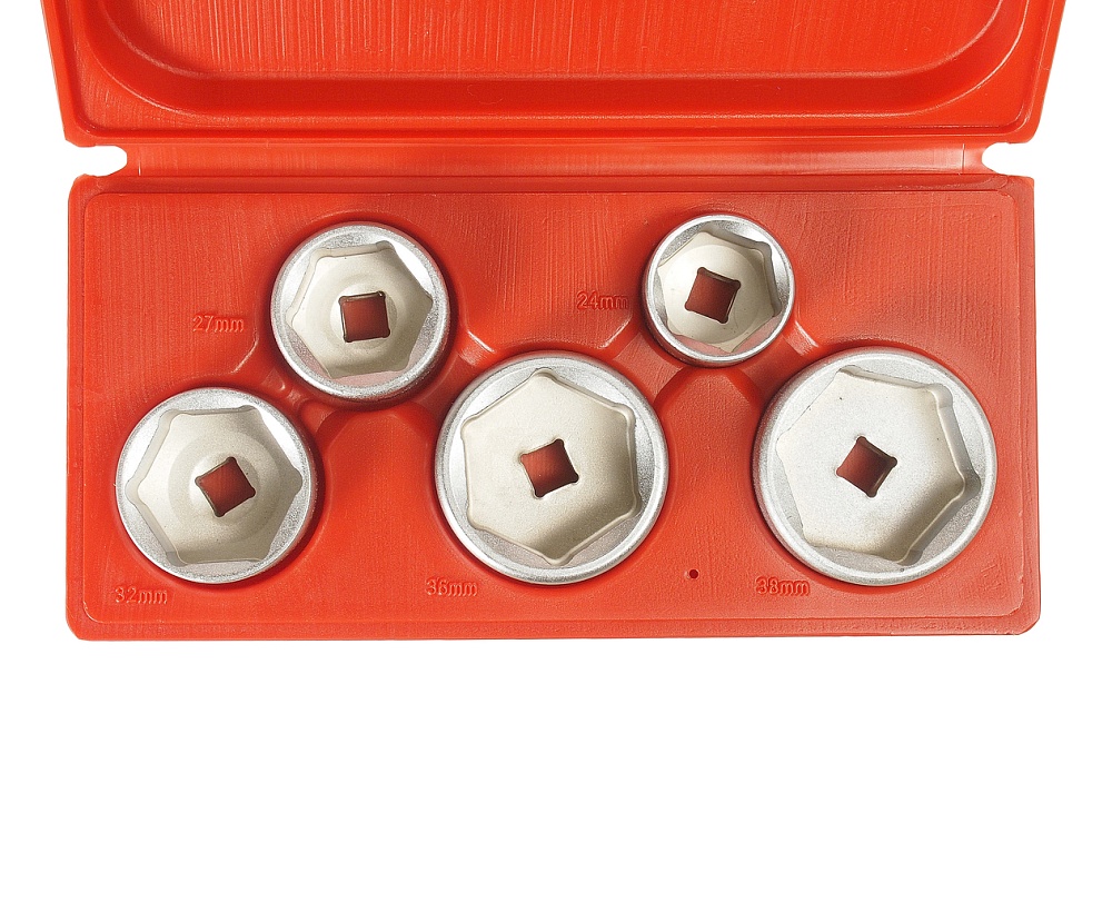 Набор съемников масляных фильтров ("чашки") в кейсе 5шт. Конструкция съемников в форме крышек исключает повреждение масляного фильтра при его снятии и установке. Съемники изготовлены в форме чашек из хром-ванадиевой стали. Для удобства каждая чашка имеет маркировку размера. Применяется с инструментом под квадрат 3/8". Общее количество предметов: 5 шт.