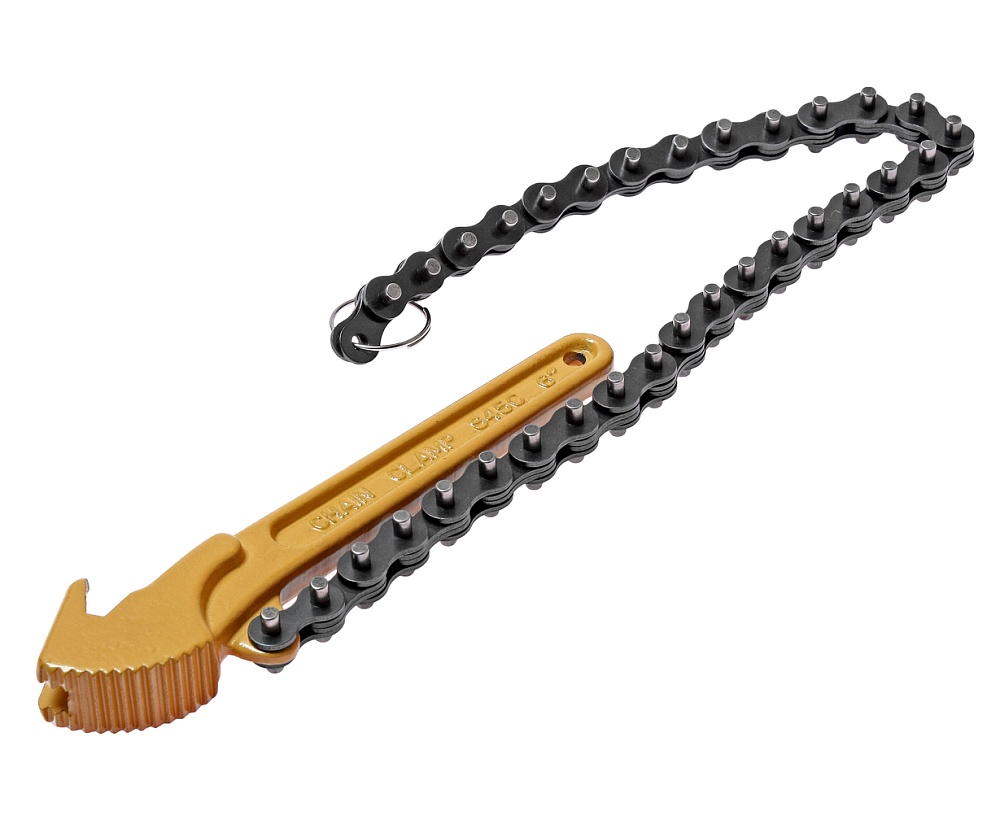 Съемник фильтра цепной. Предназначен для проведения работ по монтажу и демонтажу различных конструкций, в том числе труб практически любого диаметра. Длина ленты: 458 мм. Рукоять: 152 мм.