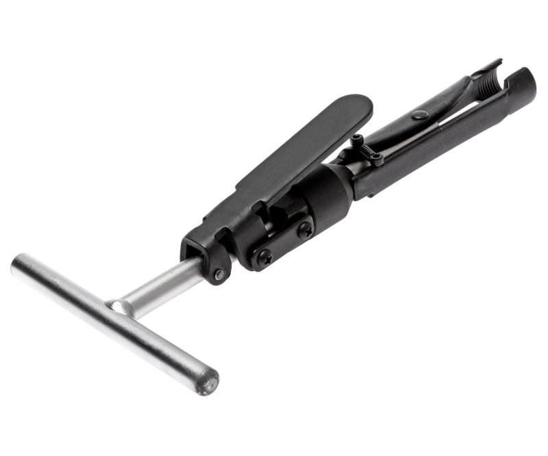 Т-образная ручка и фиксатор выгодно отличают этот инструмент от аналогов других производителей, более похожих на плоскогубцы, применение которых требует больше физических усилий, кроме того они не могут обеспечить плотного захвата сальника и удобства работы.