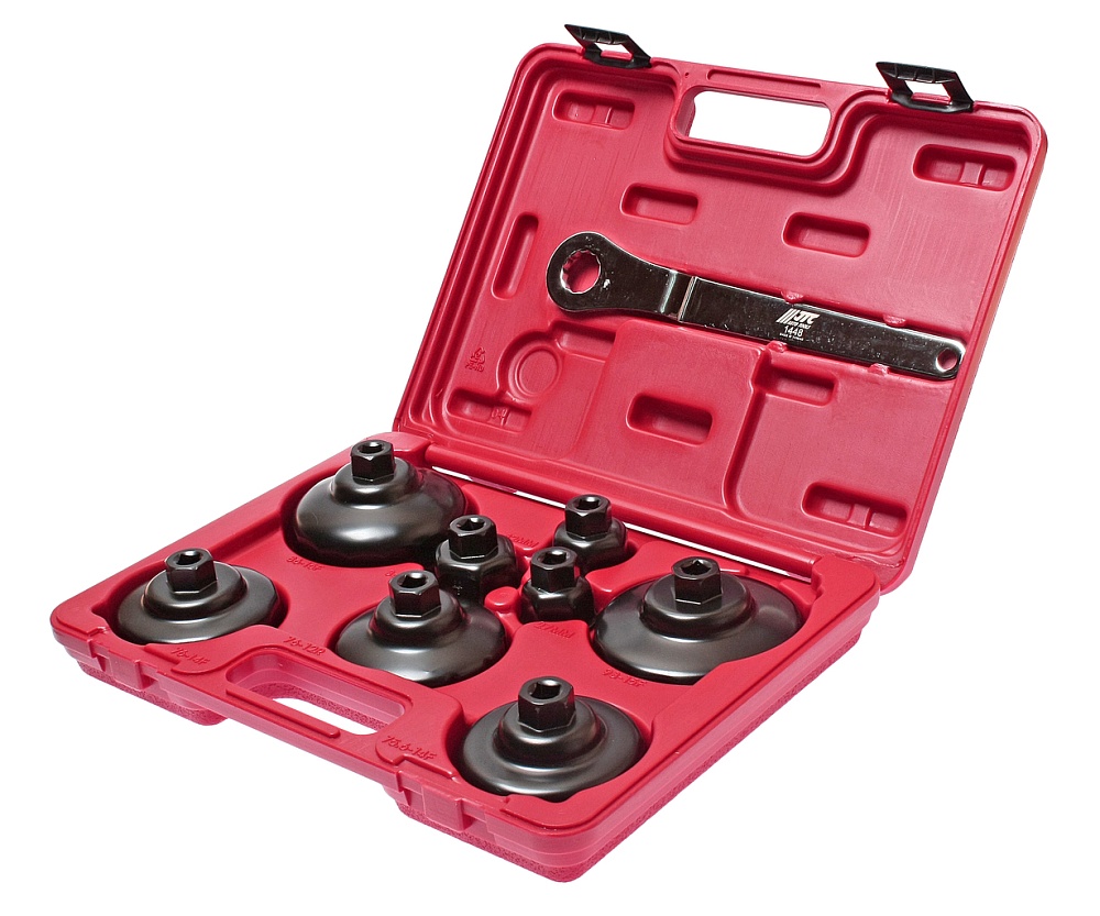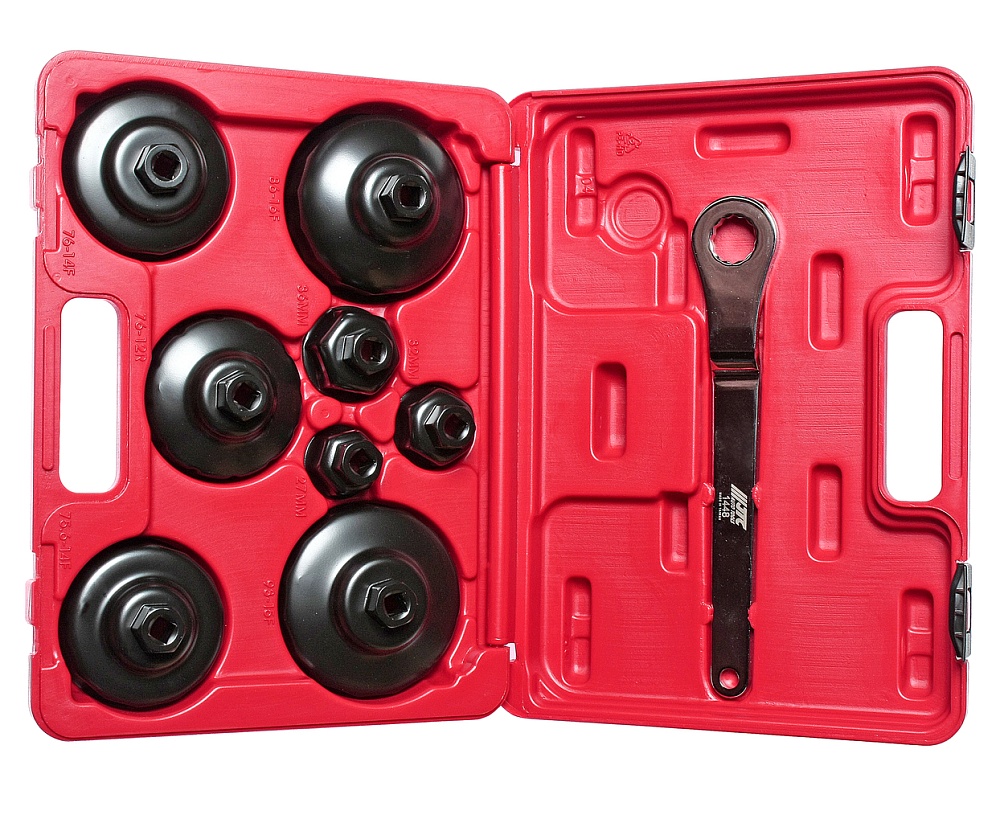 Набор съемников масляных фильтров ("чашки") - 9 шт. Съемники изготовлены в форме чашек из прочного металла и способны выдерживать большие нагрузки. Каждая чашка снабжена усиленной площадкой с посадочным квадратом. Конструкция съемников в форме крышек исключает повреждение масляного фильтра при его снятии и установке. Применяется с инструментом под квадрат 3/8 или ключом 21 мм