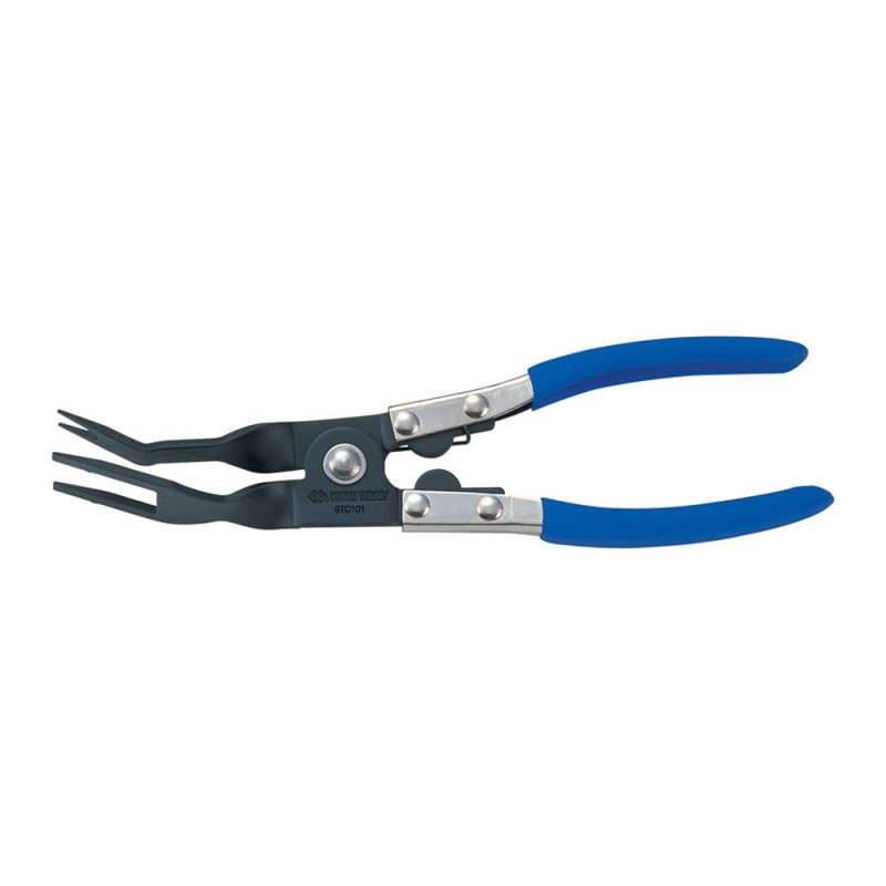 Форма щипцов позволяет проводить работы без опасения повредить приборную панель или внутреннюю обшивку авто. Конструкция щипцов оснащена возвратной пружиной.