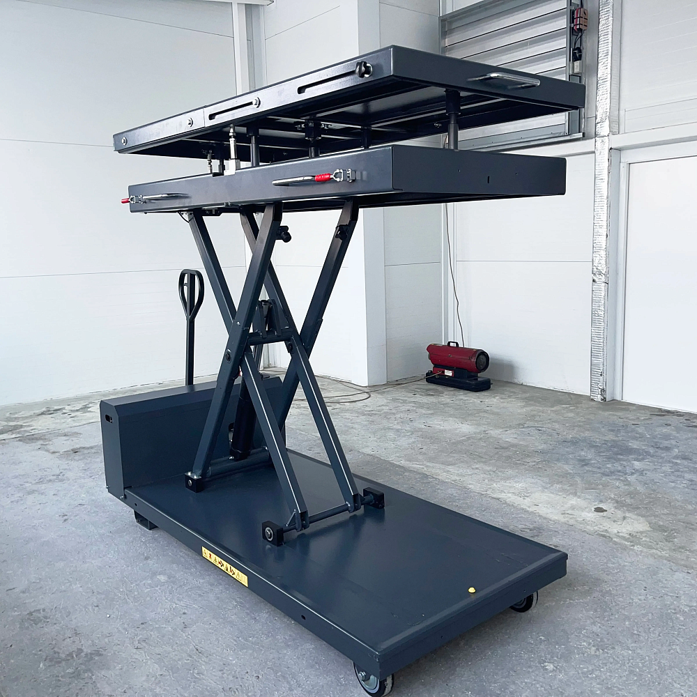 - Специализированная конструкция для электромобилей. Подъёмник разработан специально для опускания или подъёма аккумуляторов и двигателей электромобилей, что упрощает их обслуживание.