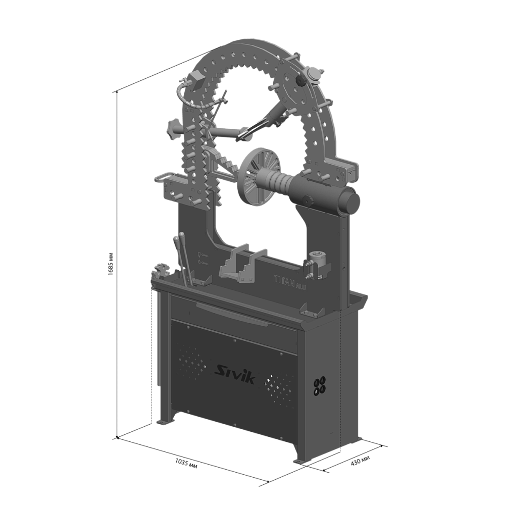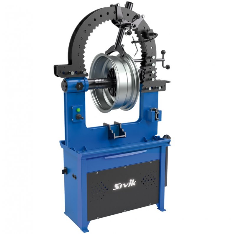 ПАРАМЕТРЫ Напряжение в сети, В380 Габаритные размеры, мм1080 х 430 х 1685 Габаритные размеры упаковки (ДхШхВ), мм1000x700x1390 Масса нетто, кг200 Масса брутто, кг250 Тип ремонтируемых дисковлитые Мин. посадочный диаметр (дюйм)10 Макс.посадочный диаметр (дюйм)24 Макс. ширина обода (дюйм)12ФУНКЦИИ «Мост», закреплённый с двух сторон, используется в качестве жесткого упора. Это исключает люфт при правке и сокращает время, затраченное на восстановление диска. Гидравлический привод с максимальным усилием в зоне правки до 5 тонн, в большинстве случаев, позволяет полностью восстановить геометрию ремонтируемого диска. Рамка с гидроцилиндром, удлинителями и поджимом используется для более жесткой фиксации диска во время правки Упор используется для более жесткой фиксации диска во время правки, а также для правки спицы колеса