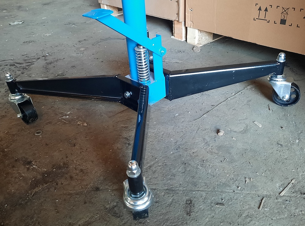 Стойка трансмиссионная гидравлическая профессиональная грузоподъемность 500кг используется при монтаже и демонтаже узлов трансмиссий, КПП, тормозных суппортов и других агрегатов автомобиля, установленного на смотровой яме, эстакаде или подъемнике для ремонта или
