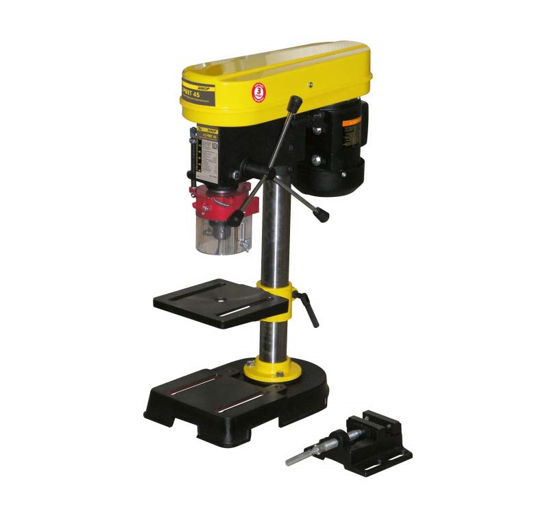 Сверлильный станок Корвет 45 с тисками предназначен для выполнения сверлильных операций в дереве, пластике, металле и других подобных материалах. Номинальная потребляемая мощность двигателя: 350 Вт. Частота вращения шпинделя на холостом ходу: 580, 850, 1220 , 1650, 2650 об/мин. Диаметр сверления: 1,5 - 13 мм.