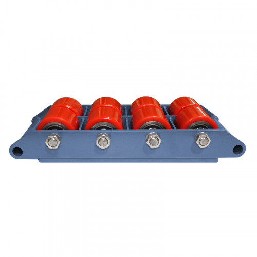 Большая площадь опоры исключает повреждение поверхности пола. Прочная рама не подвержена деформациям. Механизм поворота позволяет легко разворачивать на 360 градусов любой груз. Максимальная грузоподъемность модели — 12 т, количество роликов — 8 шт.