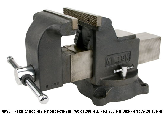WS8 Тиски слесарные поворотные (губки 200 мм. ход 200 мм Зажим труб 20-40мм)