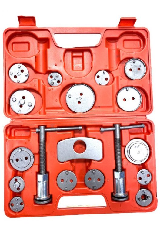 Комплект для развода поршней тормозных цилиндров дисковых тормозов применяется для упрощения работ по замене тормозных колодок. Количество предметов 12 Вес нетто    кг 1,9 Габариты в упаковке ДxШxВ    мм    330х260х54