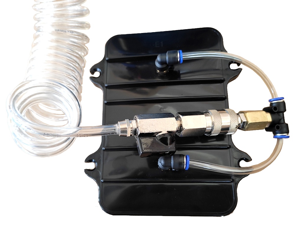 В комплект поставки устройства входит набор адаптеров для большинства автомобилей и бутыли для сбора жидкости.