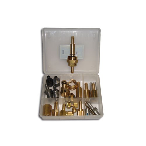 Комплект адаптеров предназначен для обслуживания топливных систем впрыска. Преимущественно а/м американского производства.Топливная рампа которых оснащена резьбовыми, быстроразъемными соединениями, а также портом Шредера.В комплекте 22 адаптера.