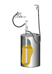 • Пневмонасос (коэффициент сжатия 3:1) для крепления на 205-литровую ёмкость. Быстрое и простое бочковое закрепление обеспечивается адаптером, входящим в комплект.