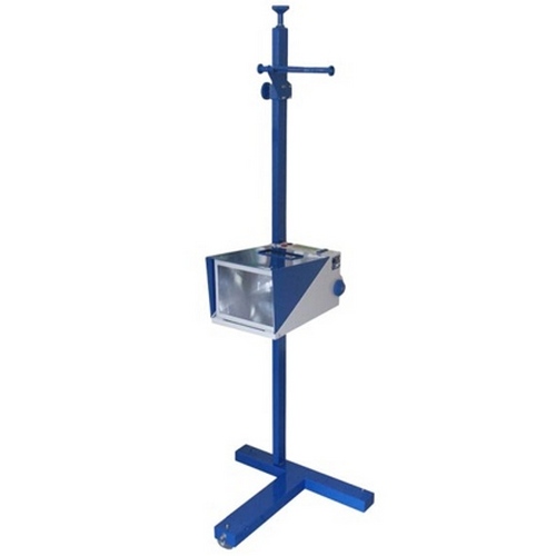 Прибор проверки и регулировки света фар оптико-механический, пластиковый наводчик, электронный люксметр, зеркальный визир, регулируемый измерительный щит, основание на колесиках, неподвижная стойка со скользящими нейлоновыми колодками.