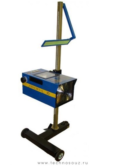 Прибор проверки и регулировки света фар оптико-механический, , с пластиковым наводчиком, электронный люксметр, зеркальный визир, регулируемый измерительный щит, основание на колесиках, неподвижная стойка со скользящими нейлоновыми колодками. Усиленная конструкция.