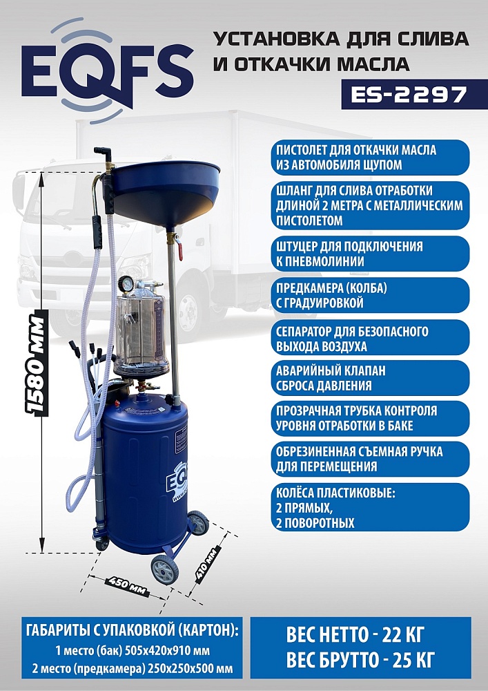 ES-2297 Установка для слива отработанного масла купить в Нижнем Новгороде цена ✅ - Все для СТО