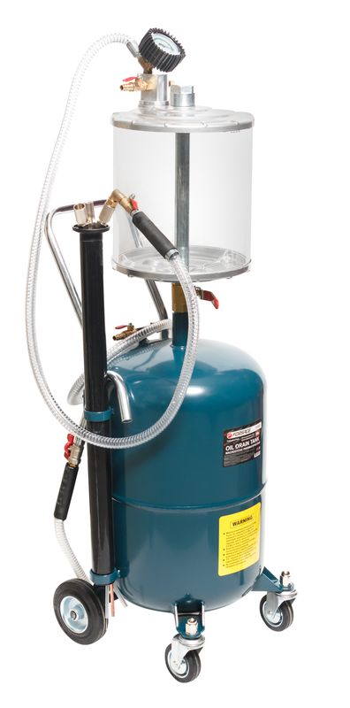 Мобильная установка для откачки отработанного масла. Масло всасывается пневматическим вакуумным насосм без движения и износа каких либо деталей с помощью заборного щупа или переходника, вставленного в масленный щуп двигателя.