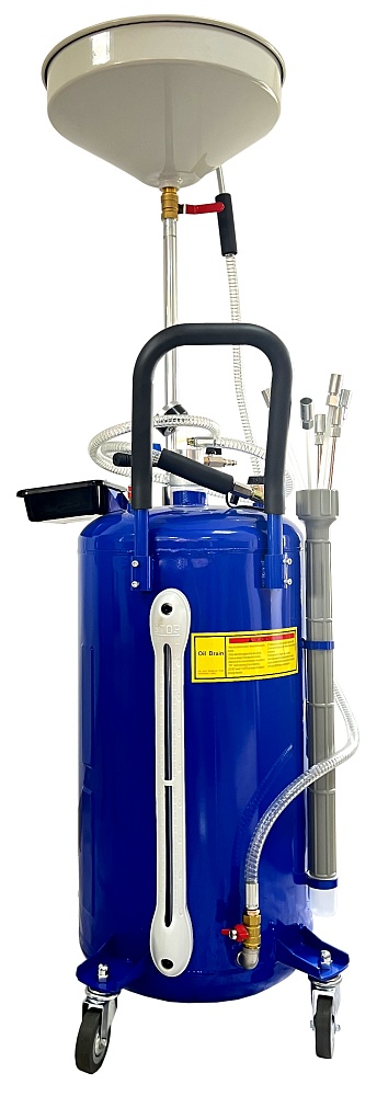 Надёжный и удобный бак для слива масла 90 л — самотёк из ДВС, КПП и мостов любых авто. В комплекте всё необходимое: сливная чаша, пистолет для откачки, прозрачная трубка уровня и колёса для лёгкого перемещения по цеху.