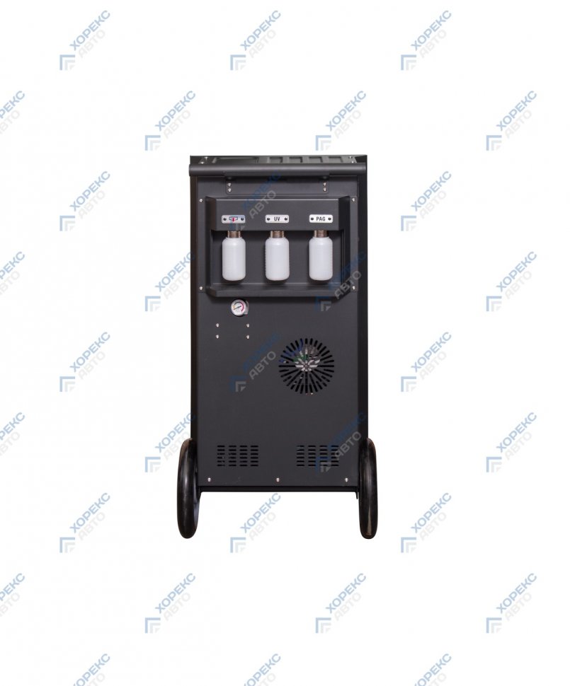 Автоматическая установка для обслуживания автомобильных систем кондиционирования с фреоном R-134a. Функции: откачивание и очистка хладагента из системы, отделение и последующий сброс масла, вакуумирование системы, автоматическая заправка фреона и масла.