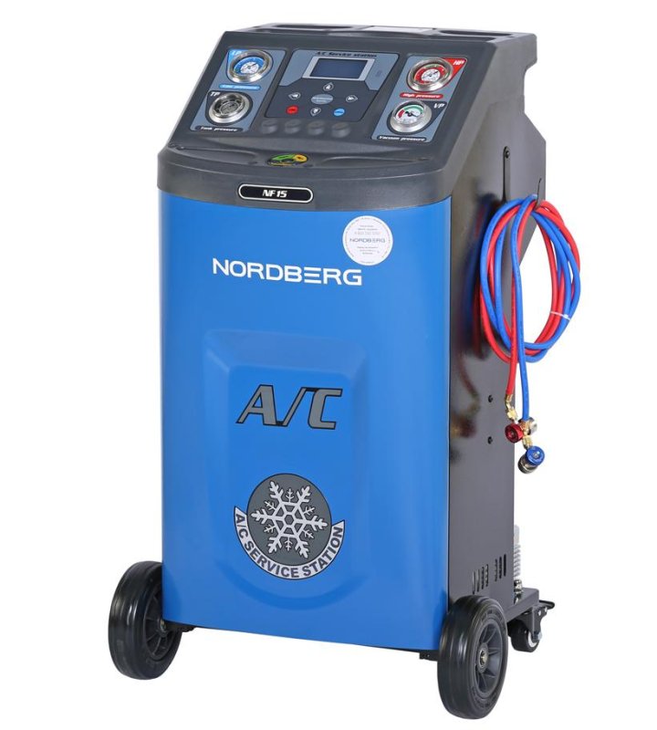 Обновленная полуавтоматическая станция с принтером NORDBERG NF15 для заправки системы кондиционирования воздухом автомобилей представляет собой устройство по обслуживанию систем кондиционирования воздуха и выполняет следующие функции: