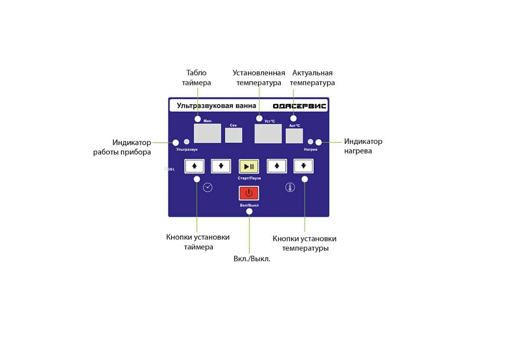 Рабочее время работы ванны выставляется с помощью кнопок управления таймером на передней панели, в диапазоне от 0 до 60 минут.