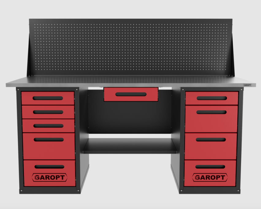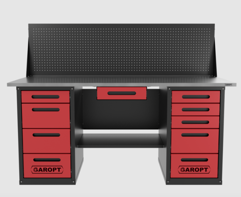 Верстак двухтумбовый 4 ящиков /5 ящиков с экраном и ящиком, 1800*700 красный GAROPT, GT1800Y1Y4Y5PP.red