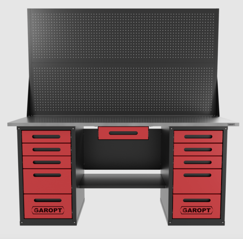 Усиленная столешница, надёжная стальная конструкция и удобная система хранения делают этот верстак оптимальным решением для ежедневных рабочих задач.