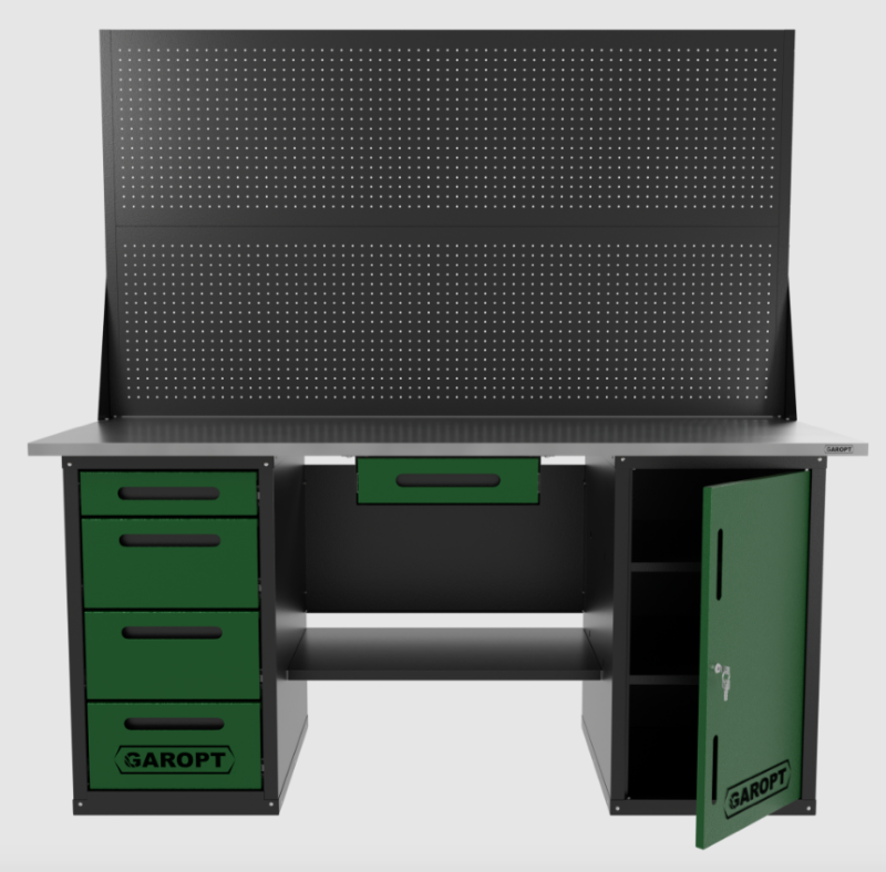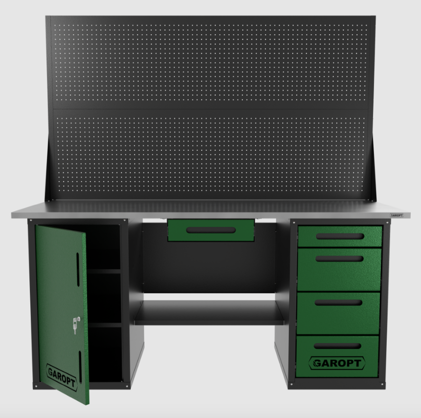 Верстак двухтумбовый дверь/4 ящиков с двумя экранами и ящиком, зеленый 1800*700 Garopt, GT1800DY1Y4PP2.green