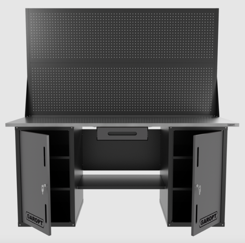 Верстак двухтумбовый с двумя экранами и ящиком, серый 1800*700 Garopt, GT1800DDY1PP2.grey купить в Нижнем Новгороде цена ✅ - Все для СТО