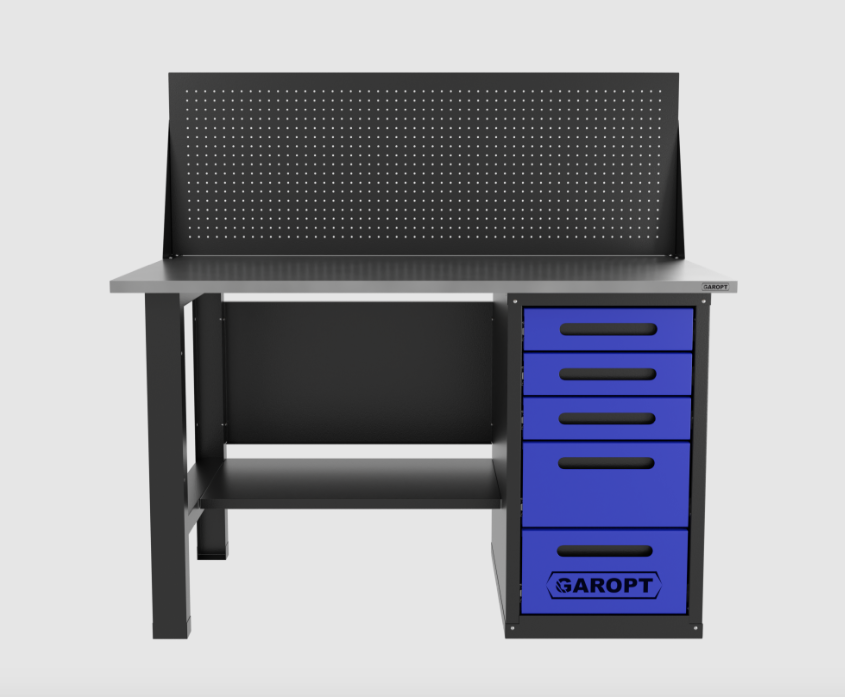 Верстак однотумбовый 5 ящиков с экраном, синий 1400*700 Garopt, GT1400STY5PP.blue